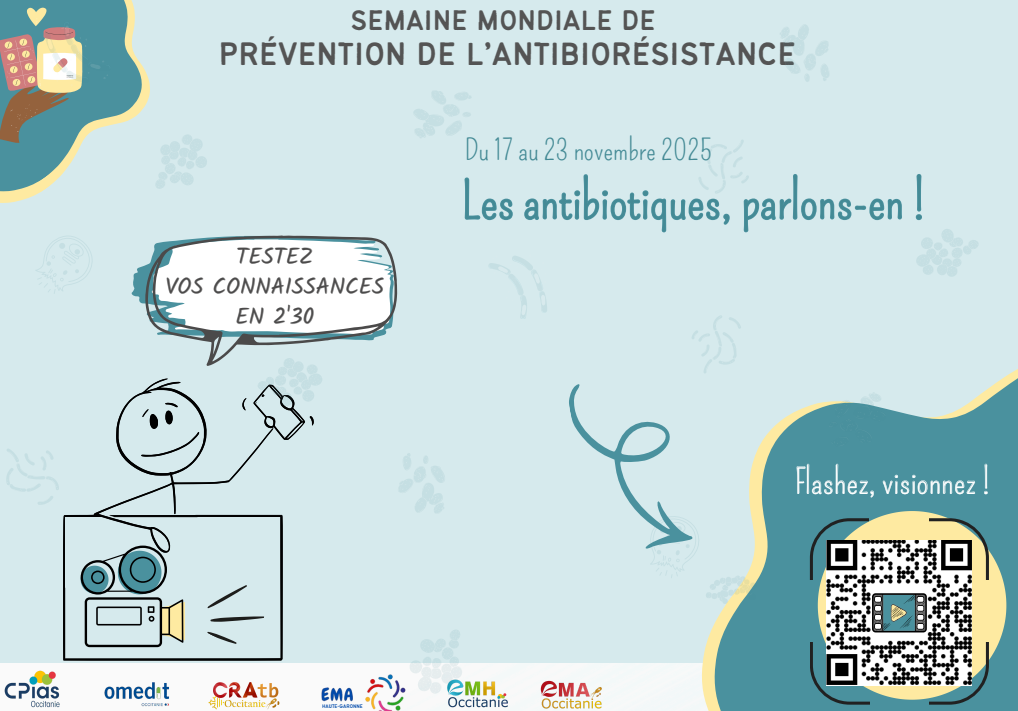 A l’occasion de la Semaine Mondiale de Lutte contre l’Antibiorésistance qui se déroule du 17 au 21 Novembre, l’OMEDIT, le CRAtb et le CPIas Occitanie vous proposent une série de supports résumant les incontournables à respecter sur les thématiques suivantes :